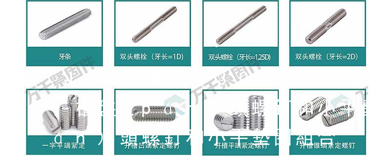 1.開(kāi)槽錐端緊定螺釘2.開(kāi)槽平端緊定螺釘3.開(kāi)槽凹端緊定螺釘4.開(kāi)槽長(zhǎng)圓柱端緊定螺釘5.內(nèi)六角平端緊定螺釘6.內(nèi)六角錐端緊定螺釘7.內(nèi)六角圓柱端緊定螺釘8.內(nèi)六角凹端緊定螺釘9.方頭長(zhǎng)圓柱球面端緊定螺釘10.方頭長(zhǎng)圓柱端緊定螺 有組合螺釘啊,你查一下,應(yīng)該可以滿足的:GB/T 9074.2—1988十字槽盤(pán)頭螺釘和外鋸齒鎖緊墊圈組合件GB/T 9074.3—1988十字槽盤(pán)頭螺釘和彈簧墊圈組合件GB/T 9074.4—1988十字槽盤(pán)頭螺釘,彈簧墊圈和平墊圈組合件GB/T 90