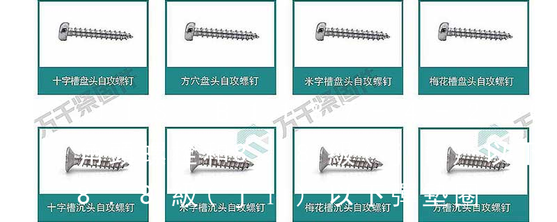 1.機(jī)螺釘 2.自攻螺釘 3.鉆尾螺釘 4.墻板釘 5.纖維板釘 6.木螺釘7.六角木螺釘 8.不脫出螺釘 9.組合螺釘 10.微型螺釘 11.家具螺釘 12.電子螺釘頭型:1.六角頭(hexagon head) 2.六角頭法蘭面(hexagon head with flange) 3.