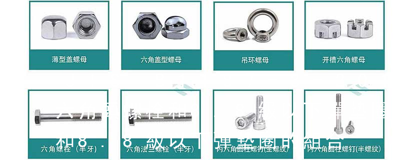 1.機(jī)螺釘 2.自攻螺釘 3.鉆尾螺釘 4.墻板釘 5.纖維板釘 6.木螺釘7.六角木螺釘 8.不脫出螺釘 9.組合螺釘 10.微型螺釘 11.家具螺釘 12.電子螺釘頭型:1.六角頭(hexagon head) 2.六角頭法蘭面(hexagon head with flange) 3. 高強(qiáng)度螺栓在生產(chǎn)上全稱叫高強(qiáng)度螺栓連接副,一般不簡稱為高強(qiáng)螺栓。 根據(jù)安裝特點(diǎn)分為:大六角頭螺栓和扭剪型螺栓。其中扭剪型只在10.9級中使用。根據(jù)高強(qiáng)度螺栓的性能等級分為:8.8級和10.9級。其中8.8級僅有大六角